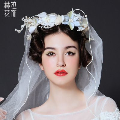 Supply Hera New Korean Bride Hair Ornaments Wreath Veil Wholesale